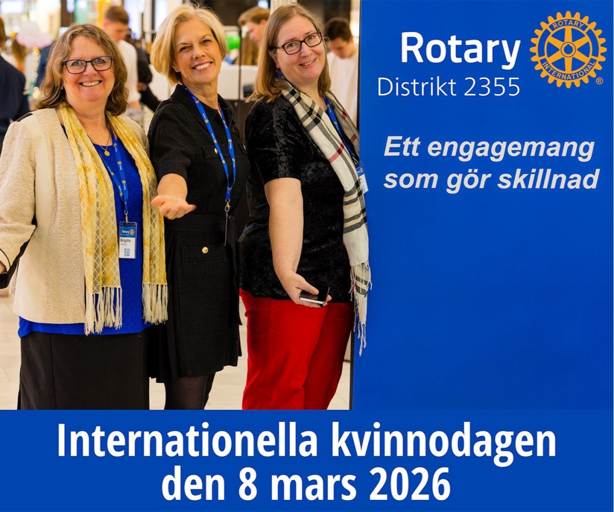 Rotary Distrikt 2355 anordnar för första gången ett föredrag med mingel i samband med Internationella Kvinnodagen för Rotarianer och gäster.